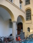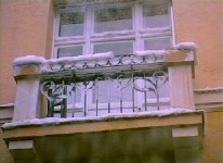 Einiges hat sich geändert im Hinterhof, manches ist gleichgeblieben. So sehen die Rückseite und der Eingang ins Vorderhaus immer noch genauso aus wie vor 30 Jahren. Hier links sind zum Vergleich zwei Einstellungen aus der Folge Der erste Schnee gezeigt, in der Pumuckl den Schnee von den Fensterbrettern wischt, und dazwischen sieht man ein aktuelles Foto der Rückseite des Vorderhauses vom Juni 2004. Direkt in der Hausecke unter dieser Fensterfront befindet sich der Eingang ins Vorderhaus (von der Straße aus gibt es keinen). Die beiden Bilder rechts Mitte zeigen diesen Eingang ebenfalls aus der Folge Der erste Schnee und in einem Foto vom Juni 2004.