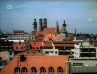 Das weitere zusätzliche Bild des Vorspanns zeigt wieder einen Blick auf die Türme der Münchner Innenstadt. Es stammt ebenfalls vom Patentamt, aber von einer etwas anderen Position. Unser Vergleichsbild vom Dach des Patentamtes ist damit von weiter oben aufgenommen, so dass man mehr als nur die Dächer der einzelnen Häuser sehen kann. Die beiden Gebäude ganz im Vordergrund des Vorspannbildes sind daher auch nur in der vergrößerten Ansicht unseres Fotos (Klick ins Bild) erkennbar. Durch die versetzte Perspektive lässt sich jedoch erkennen, dass sie nicht nebeneinander sondern schräg hintereinander liegen. Die Kameraposition für beide Standbilder bei Siehe auch: Vorspann PilotfilmMit allerbestem Dank an Sebastian nicht nur für viele Diskussionen über die Dächer der Münchner Altstadt, sowie an Thomas W. für eine erstaunliche, unabhängige Bestätigung meiner Berechnungen etlicher der Kamerapositionen. Außerdem vielen Dank an die Leute vom Deutschen Patent- und Markenamt, die uns die Vergleichsfotos ermöglicht haben! - Normalerweise kommt man da nämlich nicht rein. |